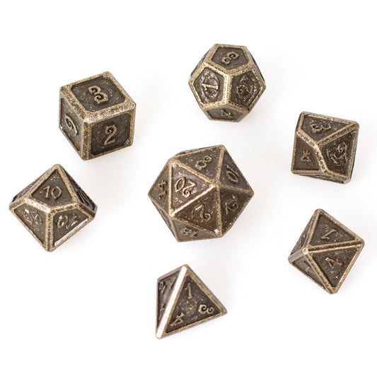 Dés Métal - lot de 7 dés (14mm) avec boite en métal - Solid Bronze