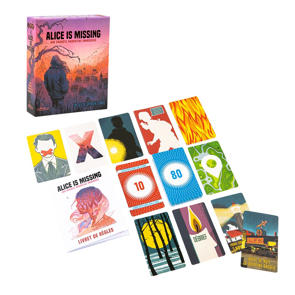 Alice is Missing est un jeu de rôle silencieux où vous devrez enquêter sur la disparition d'Alice Briarwood, une lycéenne de Silent Falls, une ville californienne paisible du Nord. L'originalité de ce jeu est que les joueurs n'ont pas le droit de communiquer verbalement entre eux. À la place, ils doivent utiliser leur téléphone pour s'envoyer des SMS révélant des indices pour résoudre l'enquête. Les joueurs incarnent leur personnage pendant toute la durée de la session de 90 minutes et communiquent uniquement par SMS dans un chat de groupe, comme s'ils étaient dans des endroits différents.
