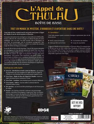 La Boîte de Base de l’Appel de Cthulhu, est le point d’entrée du classique de Chaosium centré sur le mystère et l’horreur. Dans ce jeu de Sandy Petersen, traduit par Edge Studio, des gens ordinaires se trouvent confrontés aux terribles forces surnaturelles du Mythe de Cthulhu dans les années 20. Cette boîte d’initiation contient tout le nécessaire pour entrer dans l’univers de Lovecrat :