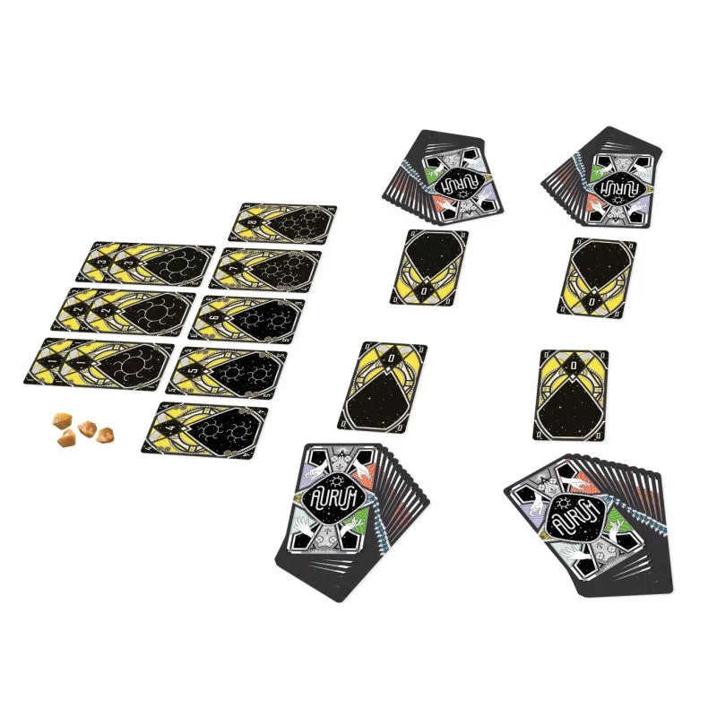 Aurum est un jeu de plis compétitifs ou en équipe des plus subtils. Vous y incarnez un alchimiste qui transforme des métaux communs en or, et marquez des points en accumulant cet or et en pariant sur le nombre de plis que vous allez remporter.