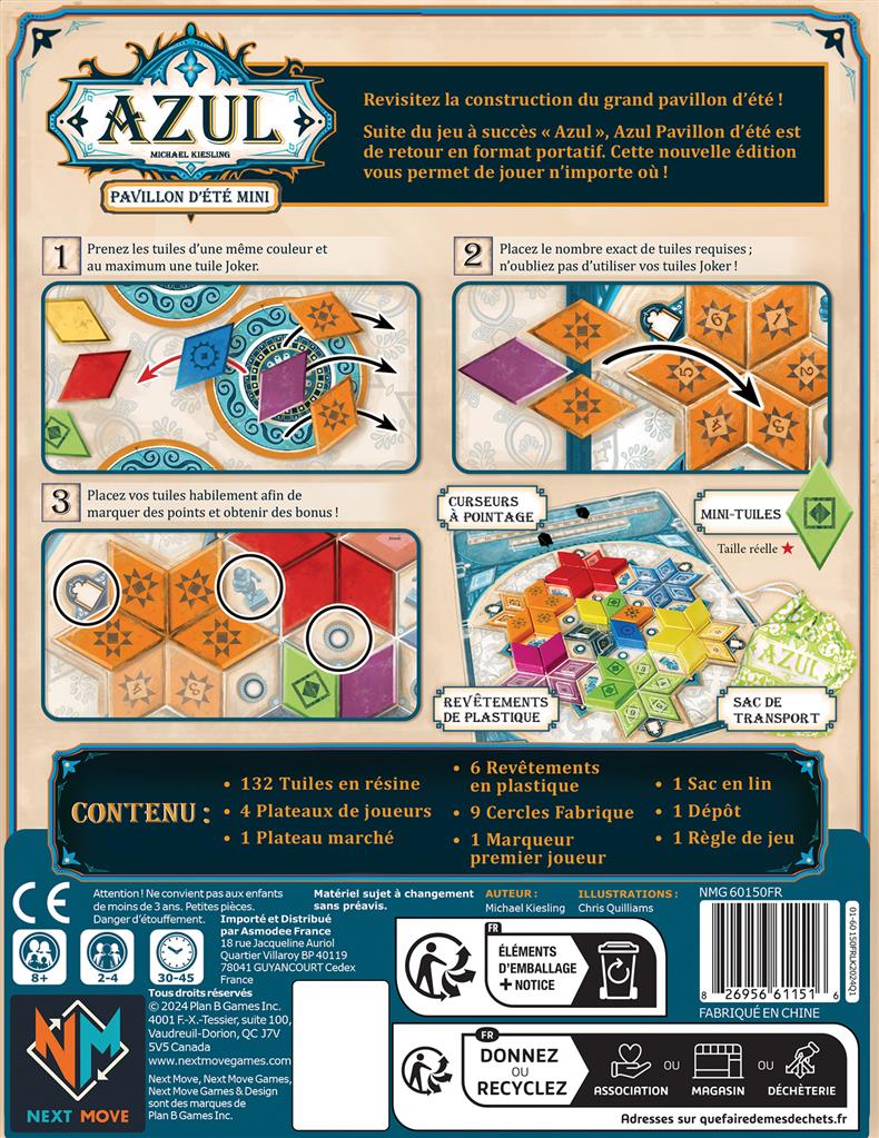À chaque tour, ramassez toutes les tuiles d’une même couleur sur une Fabrique, puis placez le nombre exact de tuiles, sans oublier vos jokers, afin de marquer des points et d’obtenir des bonus.