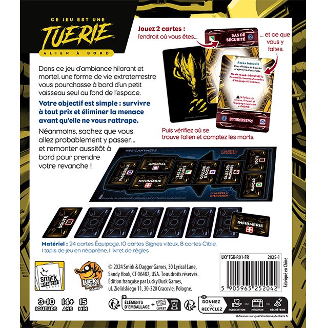 Dans Ce jeu est une Tuerie, jeu d’ambiance hilarant et mortel, une forme de vie extraterrestre vous pourchasse à bord d’un petit vaisseau-cargo seul au fond de l’espace. Votre objectif est simple : survivre et éliminer la menace avant qu’elle ne vous rattrape.