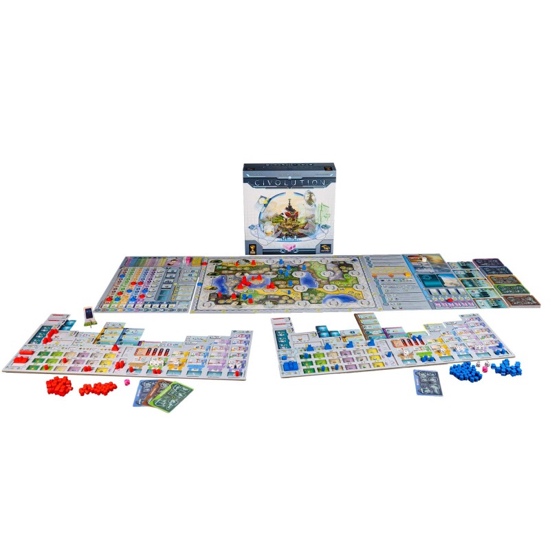 Civolution est un jeu de style européen moyennement lourd à lourd qui utilise un mécanisme de sélection de dés pour déclencher des actions sur une structure en forme d'arbre technologique. En trouvant la meilleure façon d'utiliser vos dés et de mettre en jeu vos cartes uniques, des tonnes de stratégies et de chemins vers la victoire émergent, bien qu'à chaque fois que vous jouez, vous n'explorerez qu'une fraction des possibilités offertes par le système du jeu et les nombreuses cartes.