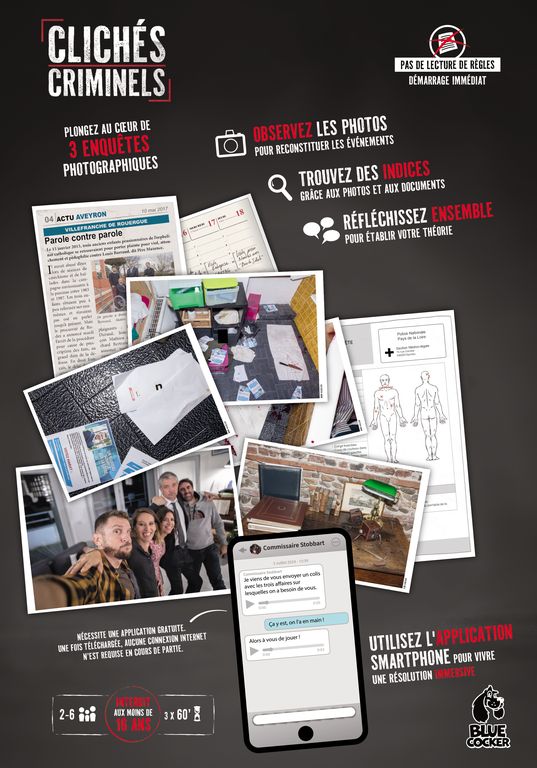 Grâce à ses visuels photoréalistes, l’expérience est hautement immersive. La prise en main est immédiate grâce à une application qui prend les joueur·euses par la main en leur évitant la lecture d’une règle de jeu. Lancez l’application, écoutez le briefing du commissaire puis laissez votre smartphone de côté : ouvrez l’enveloppe de l’affaire que vous souhaitez jouer, observez les photos de la scène de crime, parcourez les documents fournis par la police et coopérez pour établir votre théorie. Une fois satisfaits par vos réflexions, revenez sur l’application pour échanger avec la commissaire et éprouver votre théorie. Grâce à ce système de résolution innovant, les joueuses et les joueurs peuvent se rendre compte de leurs erreurs et même demander quelques indices sans pour autant se faire divulguer la solution et ainsi revenir à l’enquête en cas de fausse piste.