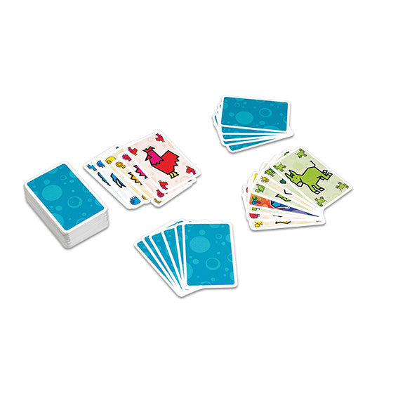Il faut se débarrasser au plus vite de ses 8 cartes ! Pour cela, soyez vigilants et posez une carte de la même couleur ou illustrant le même animal que la carte précédente. Mais attention, le joueur doit imiter le cri de l’animal qu’il pose. La carte est rouge ? Dans ce cas il ne faut surtout pas crier... et si c’est le coq, annoncez alors haut et fort : Cocotaki ! Il faut vraiment être très réactif. Cette variante très animée du huit américain est un jeu délirant pour toute la famille.