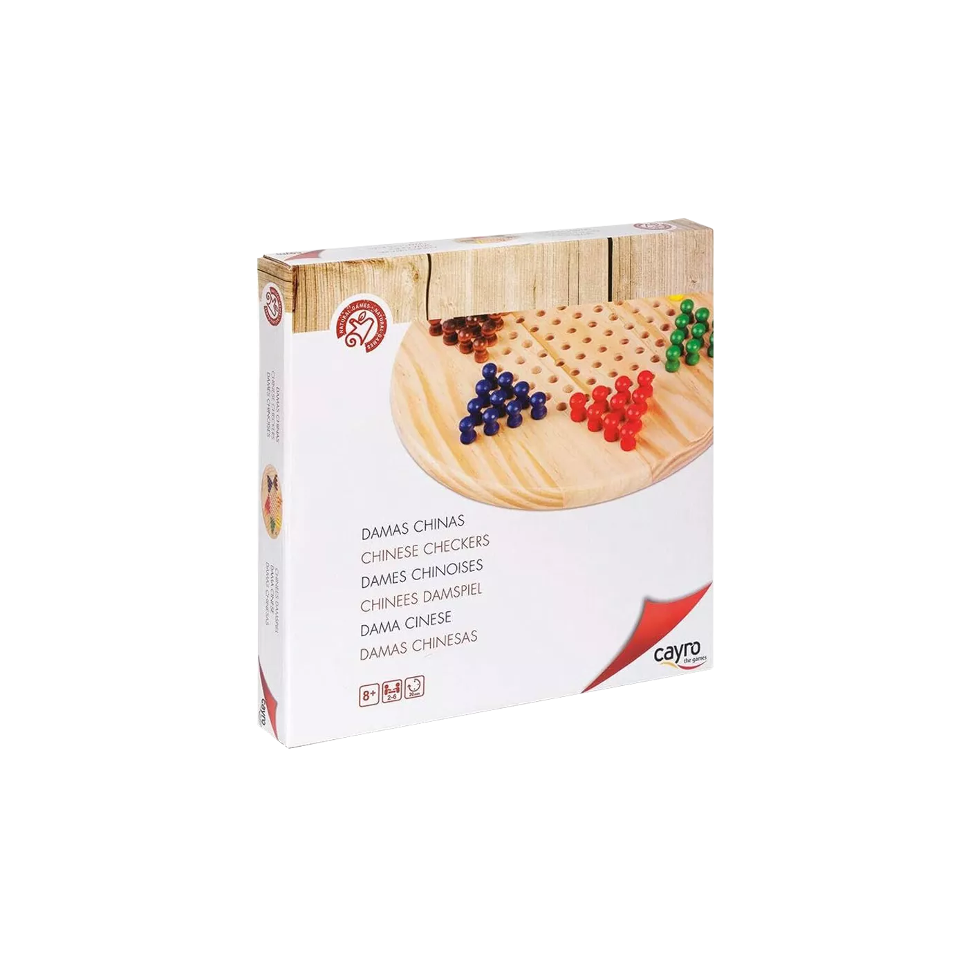 Les pions sont disposés dans les six triangles extérieurs d'une étoile à six branches, formant six groupes de dix pions, et permettant de jouer à deux, trois, quatre, ou six joueurs à la fois !