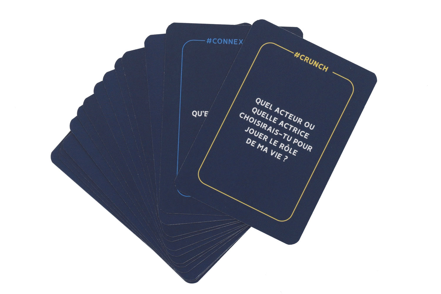 Le jeu est composé de 4 catégories : Connexions, Crunch, Authentique et Hors-piste. Mélangez les cartes ou choisissez une catégorie selon votre humeur de jeu !