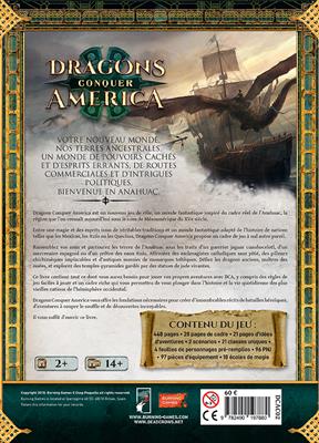 Dragons Conquer America est un jeu de fantasy historique se déroulant dans le Nouveau Monde, à l’époque de l’arrivée des Espagnols. La magie, les créatures fantastiques et les esprits sont omniprésents. Parcourez les déserts peuplés de tribus nomades en passant par les jungles constellées de cités mayas et, évidemment, l’immense empire aztèque.