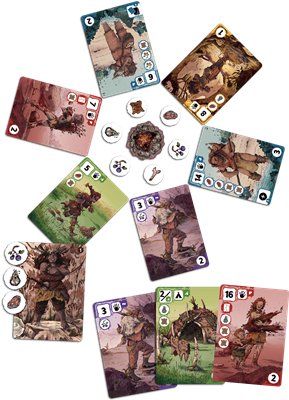 Formez votre tribu en rassemblant devant vous des cartes hommes et femmes préhistoriques, outils, huttes et réserves. Choisissez bien vos cartes ! Quand vous les prenez, elles vous donnent accès à des ressources indispensables au développement de votre tribu. En fin de partie, si elles s’associent bien, elles vous rapporteront de nombreux points.