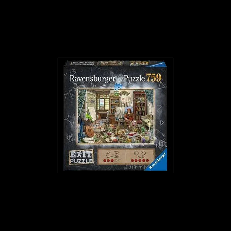 Découvrez un puzzle inspiré des jeux d'évasion Escape Game ! Plongez au cœur de cette illustration inédite et de son histoire originale, et résolvez tous les mystères qui l'entourent. Commencez par assembler les 759 pièces de ce puzzle, puis résolvez les différentes énigmes cachées au cœur de l'illustration. Au fur et à mesure, vous récolterez des pièces qui vous permettront de reconstituer la solution finale, comme clef de sortie de ce grand jeu d'évasion. Faites preuve de patience et de méthode afin d'assembler ce puzzle qui représente un atelier d'artistes. Une fois collé il fera un bel objet de décoration. Une fois assemblé, le puzzle mesure 70 x 50 cm environ.