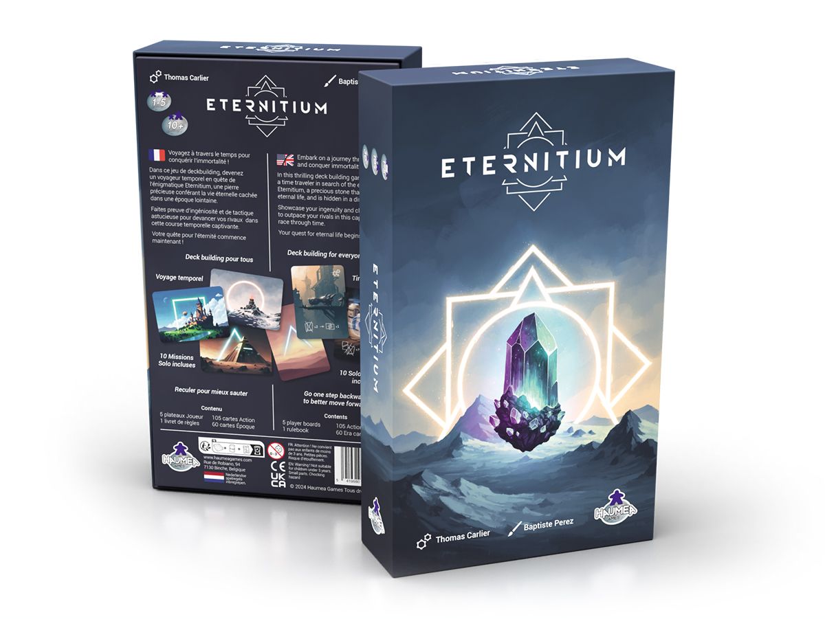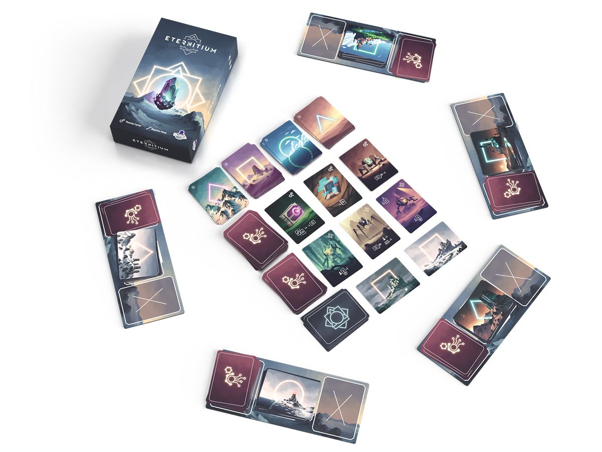 Plongez dans l'univers palpitant de Eternitium, un jeu de Deck Building captivant où vous traverserez les âges à la recherche de la légendaire gemme d'immortalité. À travers le continuum espace-temps, d'époque en époque, vous allez devoir faire preuve d'habilité et de réflexion pour manipuler les portails temporels afin d'être le 1er à trouver la fameuse gemme tant convoitée.