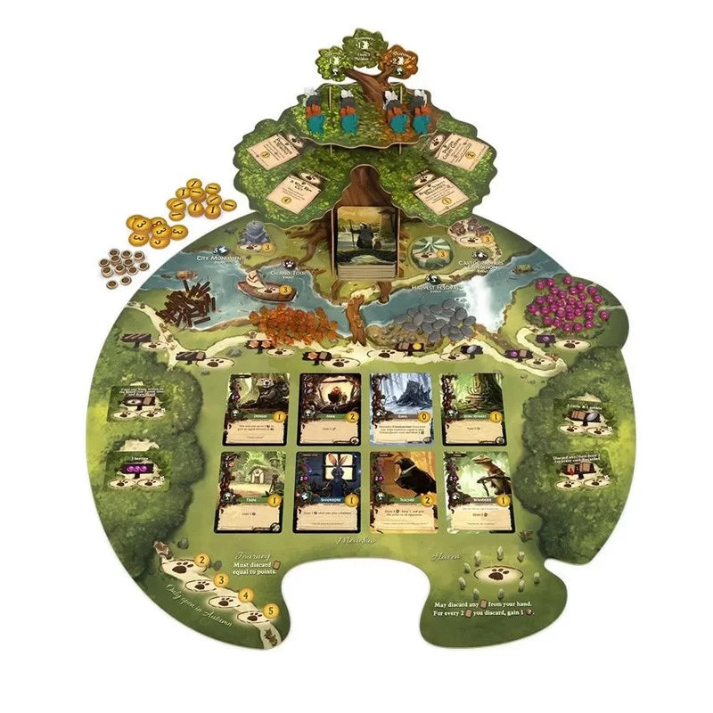 Dans la charmante vallée d'Everdell, sous les branches d'arbres majestueux, parmi les ruisseaux sinueux et les bosquets mousseux, une civilisation d'animaux forestiers se développe et prospère.