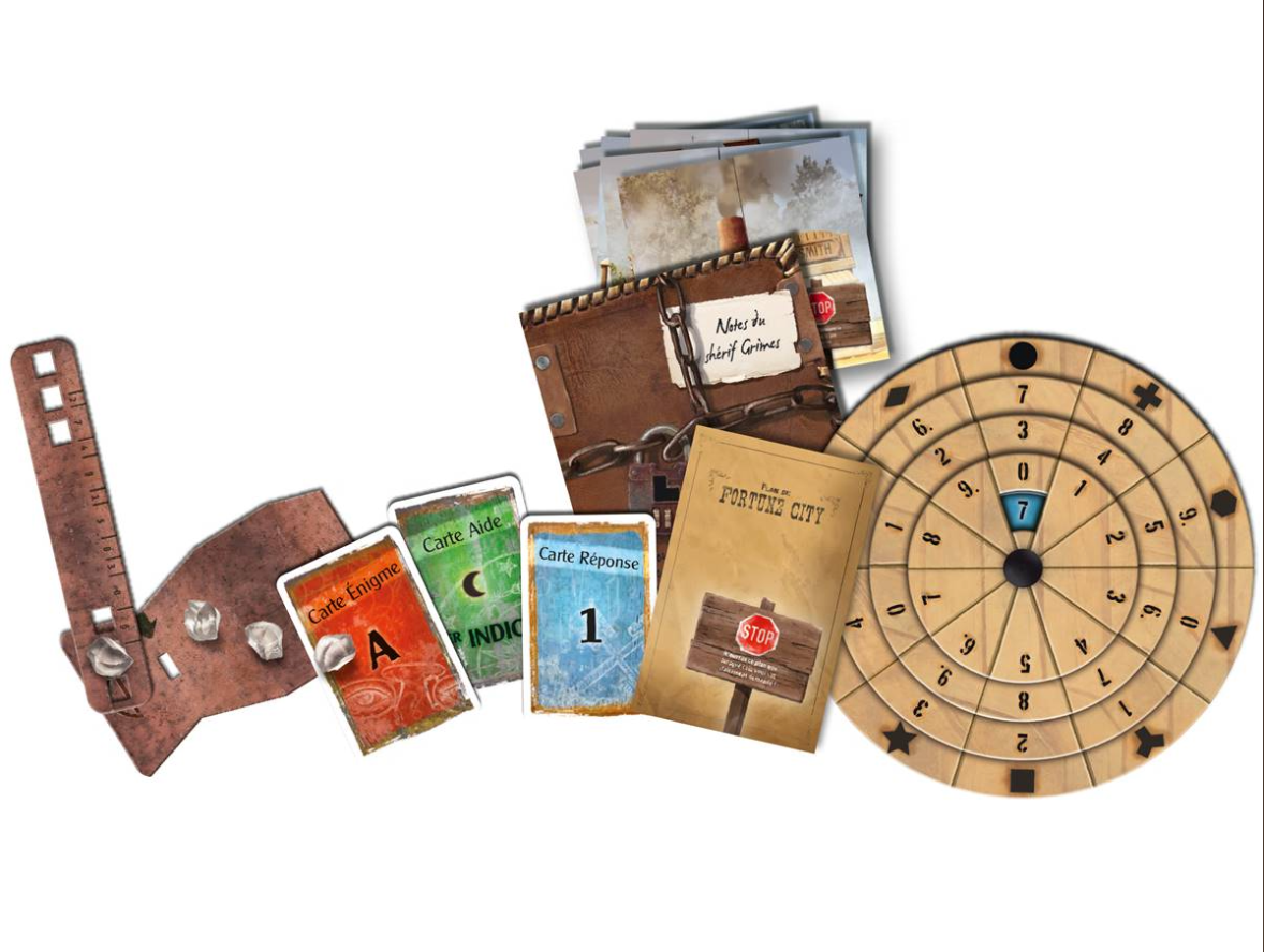 Ni une ni deux, vous vous mettez en route pour Fortune City. À votre arrivée, le shérif ne vient pas vous accueillir. Étrange ! Il semblerait qu’il ait disparu de la bourgade sans laisser de traces. Vous ne trouvez qu’un carnet lui appartenant et un étrange disque tournant.