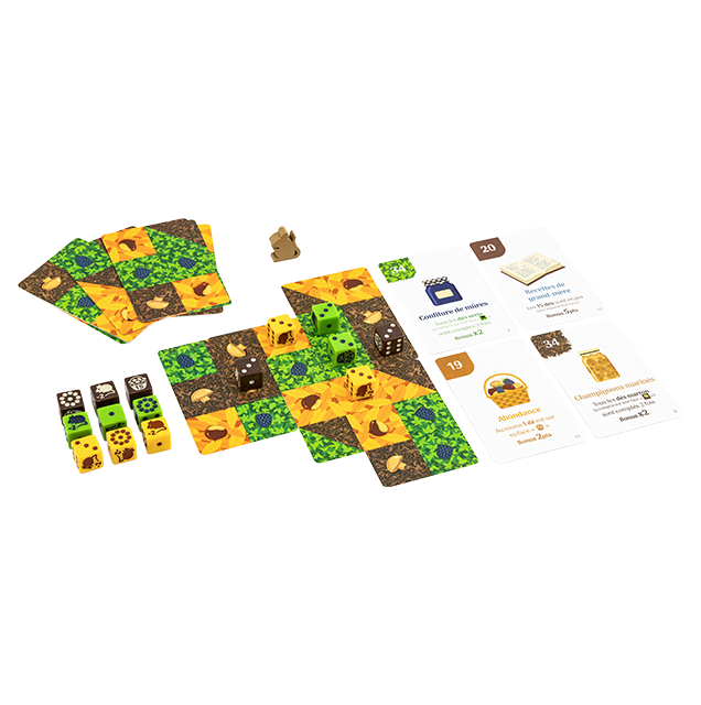 Agencez vos 9 cartes en superposant les terrains de même type pour ramasser le plus de nourriture du sous-bois !