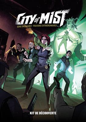 Le kit de découverte est la porte d’entrée idéale. Il contient les règles nécessaires pour jouer une partie ; une description de la Ville, le cadre de jeu des enquêtes de City of Mist ; 7 personnages prêts-à-jouer tels que Kitsune, Post-Mortem ou Excalibur ; deux affaires complètes.