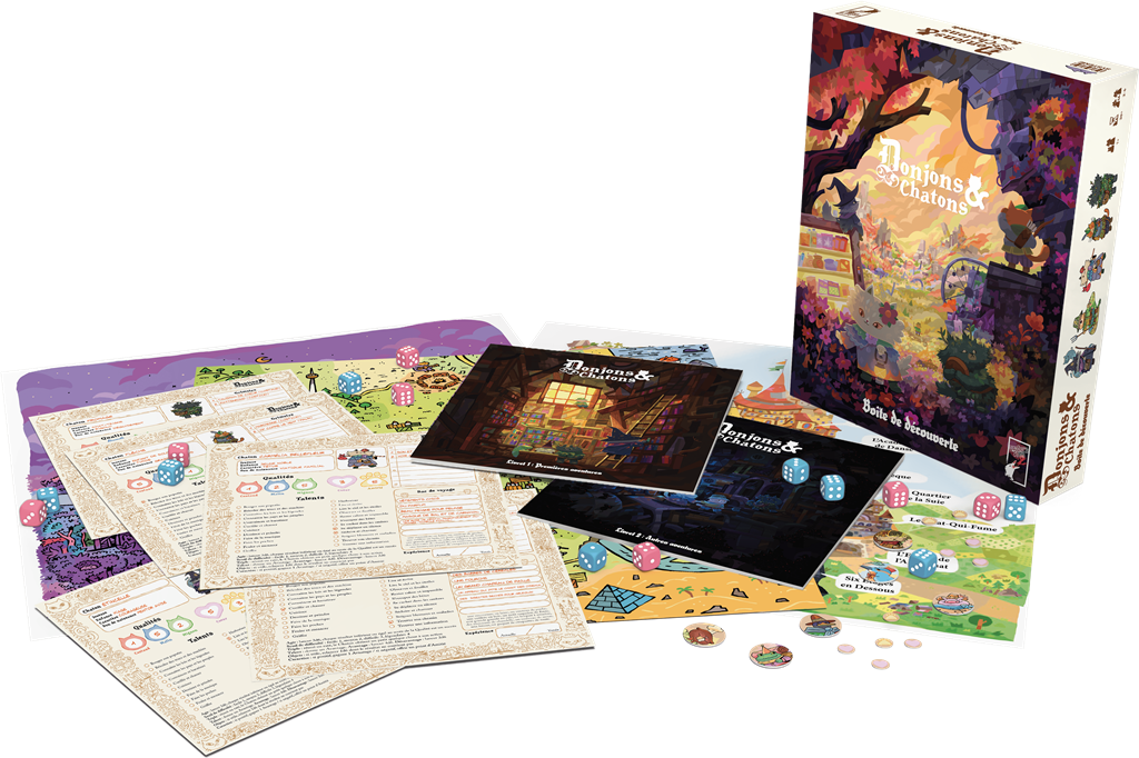 La Boite Découverte vous permettra d’incarner des héros chatons partant à l’aventure. Elle vous guidera pas à pas dans les règles de jeu et l’univers.