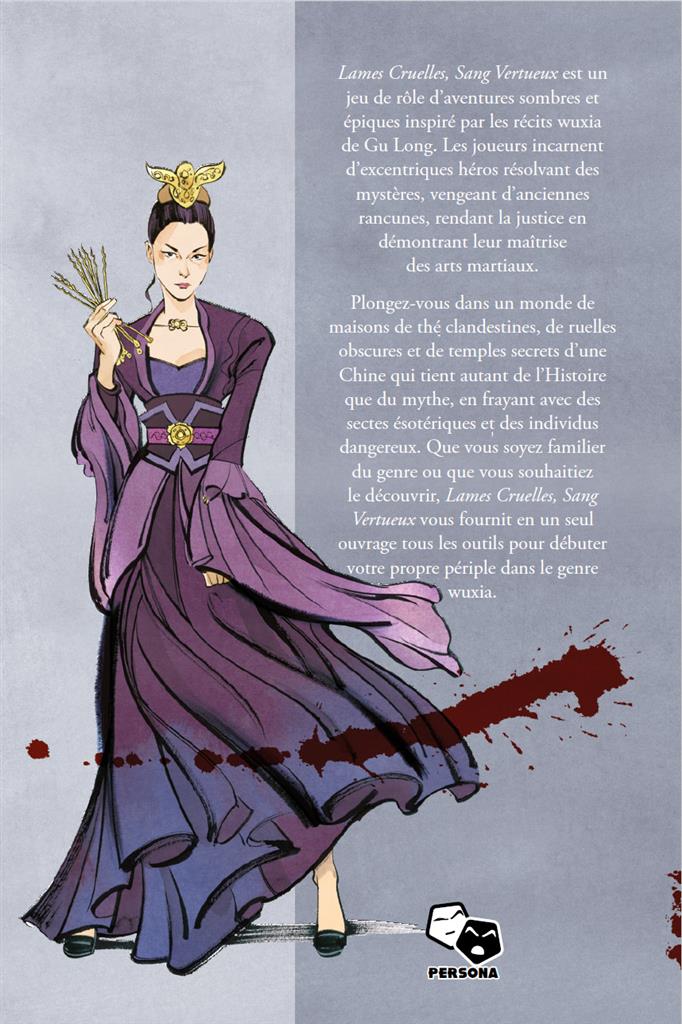 Lames Cruelles, Sang Vertueux est un jeu de rôle s’inspirant du genre littéraire et cinématographique Wuxia, racontant les aventures de ‘chevaliers’ errants dans la Chine médiévale.