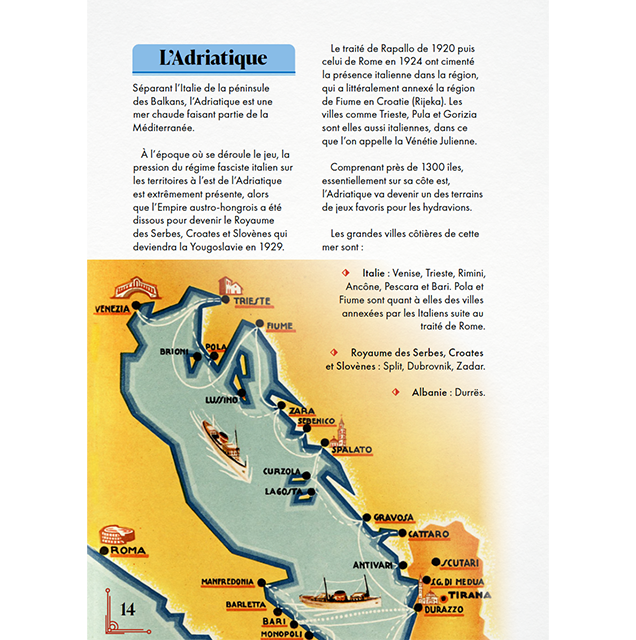 Dans Les As de l’Adriatique, revivez cette épopée au-dessus des eaux chaudes de l’Adriatique, volez pour la gloire tout en veillant à ne pas sombrer dans la nostalgie du passé. Dans ce jeu de rôle solo, il ne vous faudra que deux dés à 6 faces, de quoi écrire et votre imagination pour jouer. Quel que soit le temps passé à jouer, embrassez un ciel aux couleurs sépia au-dessus d’une mer azur, simplement et sans aucune expérience requise.