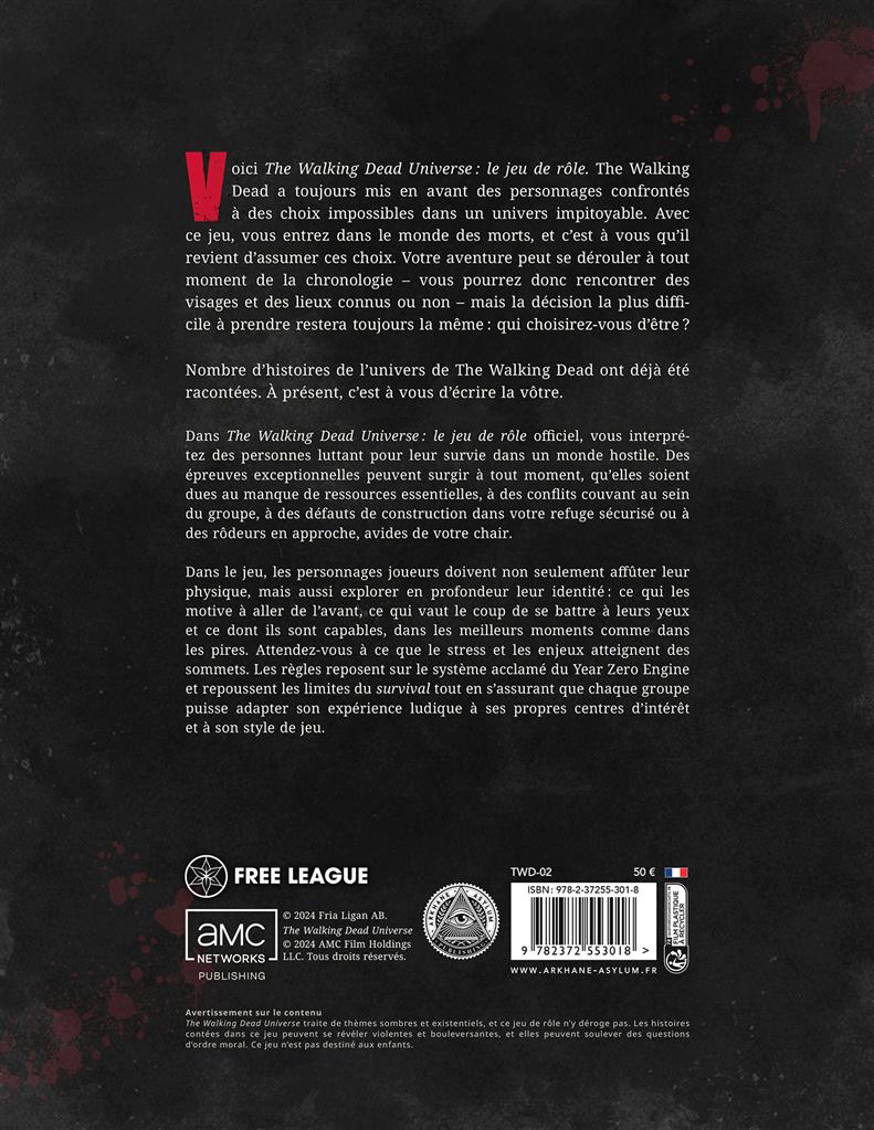 The Walking Dead a toujours mis en avant des personnages confrontés à des choix impossibles dans un univers impitoyable. Avec ce jeu de rôle, vous entrez dans le monde des morts, et vous vous retrouvez directement devant ces choix. Votre aventure peut se dérouler à tout moment de la chronologie — vous pourrez donc rencontrer des visages et des lieux connus ou non — mais la décision la plus difficile à prendre restera toujours la même : qui choisirez-vous d’être ?