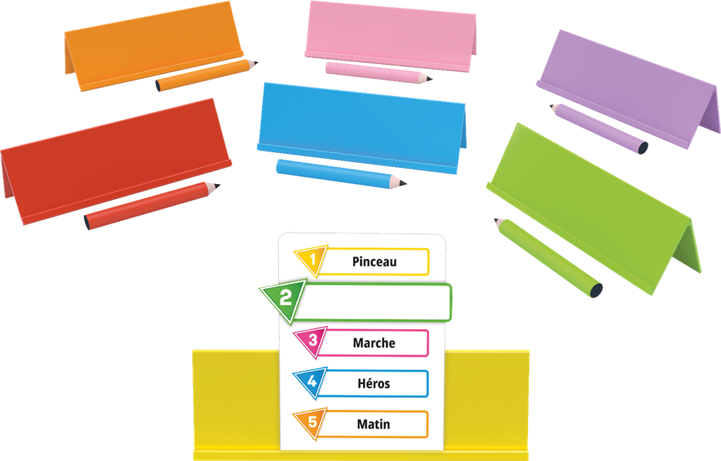 - Les autres joueurs écrivent un mot sur leur tableau pour aider le joueur actif à deviner le mot, sans se consulter entre eux.