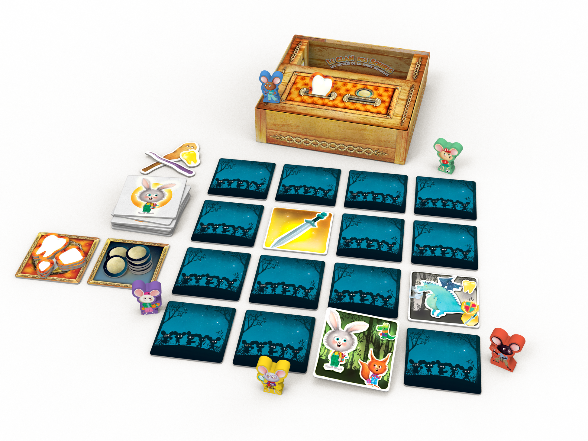 Pour commencer à jouer, il faut retourner les tuiles en un carré de 3x3 ou de 4x4. À chaque tour, tu dois retrouver un animal qui se cache derrière les tuiles. Mais les autres n'ont le droit de t'aider qu'en indiquant la colonne ou la ligne dans laquelle ils pensent avoir vu l'animal.