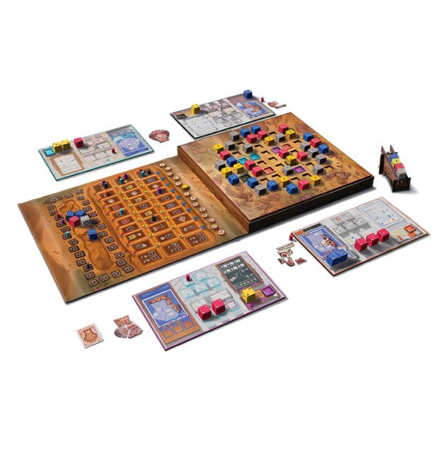 Inspiré des mécaniques classiques du solitaire, le cœur du jeu vous fait déplacer et capturer des dés sur une grille pour accomplir différentes actions, progresser sur des pistes d’excavation pour profiter d’avantages uniques et toucher des bonus de fin de partie. Parviendrez-vous a surpasser vos adversaires ?