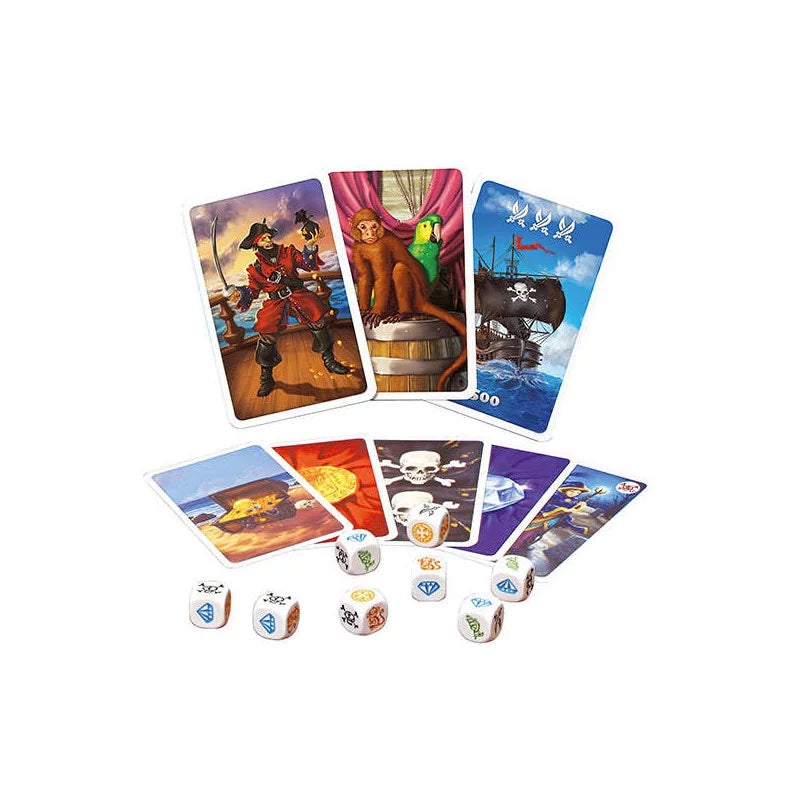 Glissez-vous dans la peau d'un vieux loup de mer et organisez des parties de dés endiablées ! A l'aide des déroutantes cartes Pirate, défiez la chance et vos adversaires pour réaliser des combinaisons de dés et marquez un maximum de points. A votre tour, révélez une carte Pirate qui va influer sur votre tirage. Puis, lancez les dés et tentez de réaliser la meilleure combinaison : vous pouvez relancer autant de fois que vous le souhaitez mais attention aux trois têtes de mort ou vous rentrerez les mains vides ! Réservé aux pirates qui n'ont pas froid aux yeux !