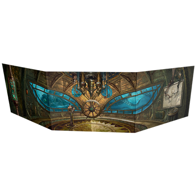 - un superbe écran rigide en 3 volets format panorama, montrant l’intérieur du poste de commandement du Nautilus par Didier Graffet ;