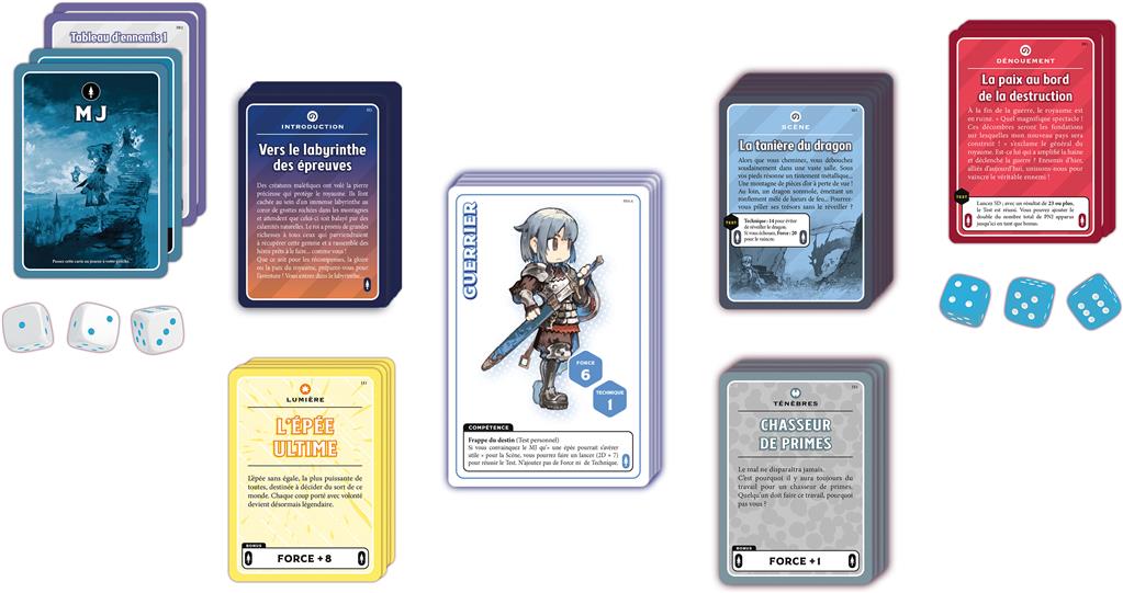 Lancez les dés, jouez vos cartes et créez votre histoire entre amis. Hormis votre imagination, tout ce dont vous avez besoin tient dans cette boîte !