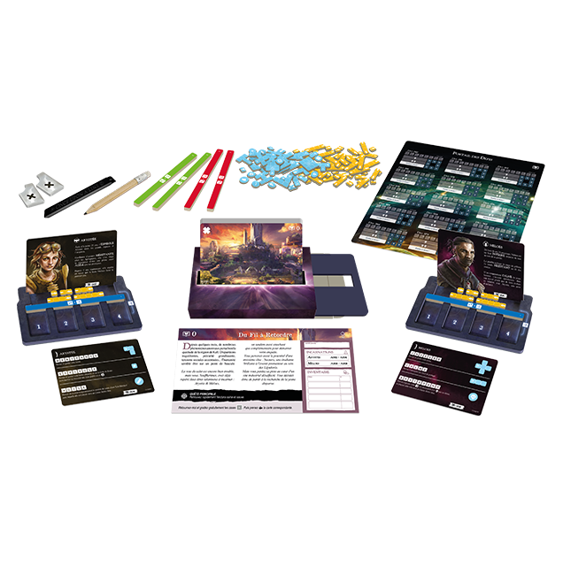 Pour jouer, choisissez parmi tous vos Héros, chacun ayant ses propres talents uniques. Puis, plongez dans des histoires de plusieurs heures et explorerez-les à l’aide de la Grille du Destin. Les Grilles du Destin utilisent de l’encre à gratter, de sorte que chaque décision que vous prenez modifie l’histoire en gravant physiquement vos actions sur la grille. Chacune de vos actions fera apparaître des lettres ou des symboles vous permettant d’arpenter de nouveaux lieux, rassembler des objets et accomplir des quêtes.