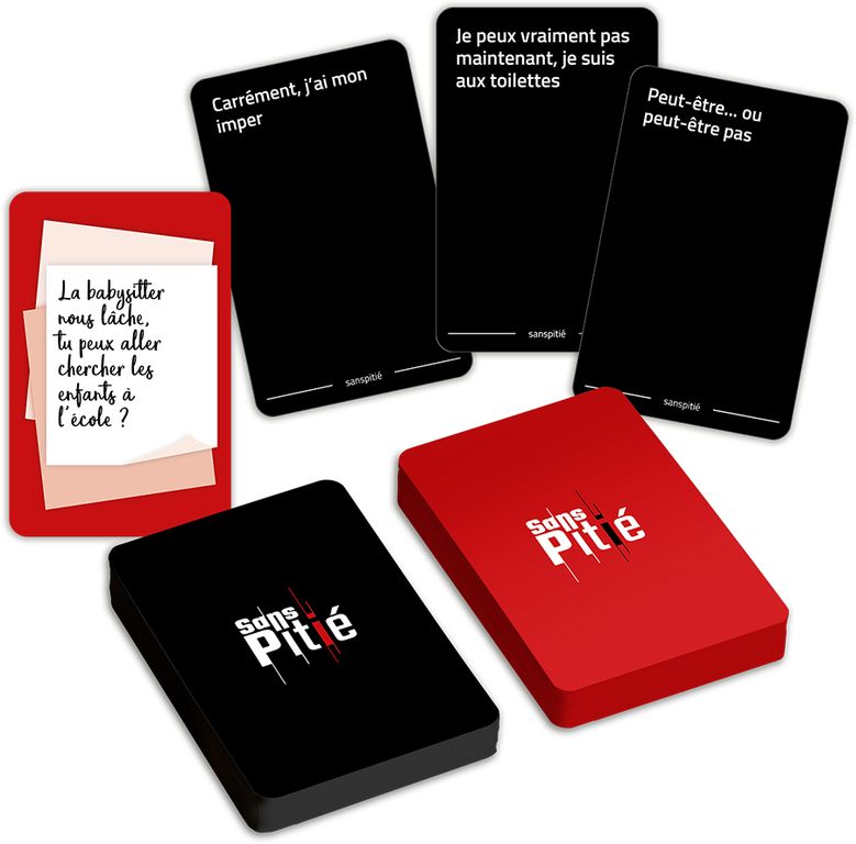 Sans Pitié, le jeu de soirée méchant pour les gens gentils », est un jeu à l’humour corrosif destiné aux jeunes adultes. Le concept repose sur nos réponses aux interactions de la vie quotidienne (email, appel, conversations, réseaux sociaux...). C’est une co-création des auteurs de Blanc-Manger Coco et de Juduku.