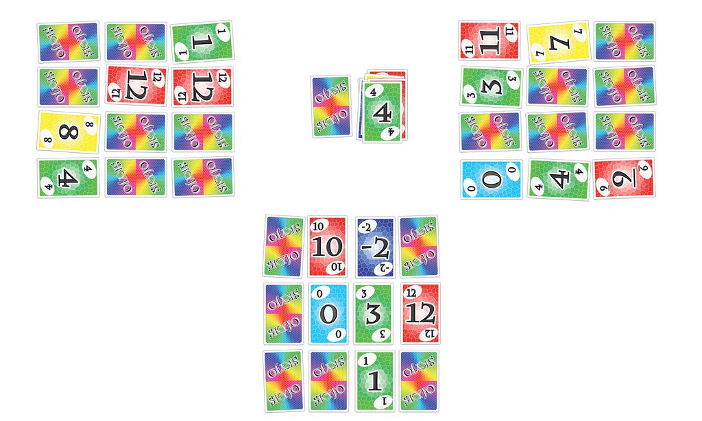Au début de la partie les joueurs disposent 12 cartes faces cachées devant eux et en retournent 2 faces visibles. A son tour de jeu le joueur doit piocher une carte dans la pioche ou dans la défausse. S’il se décide pour la carte visible de la défausse il doit immédiatement échanger cette carte avec l’une de ses douze cartes et la poser face visible. S’il se décide pour la carte face cachée de la pioche, il peut regarder la carte et choisir s’il veut l’échanger contre l’une de ses cartes (cachées ou visibles). S’il ne veut pas garder la carte tirée, il la défausse, mais doit révéler une de ses cartes. Il est possible de défausser 3 cartes d’un coup si toutes les cartes d’une même colonne sont identiques. Lorsqu’un joueur a révélé toutes ses cartes, le tour se termine puis la manche s’arrête. Les joueurs comptent les points des cartes qui restent devant eux. Dès qu’un joueur atteint 100 points ou plus, le joueur ayant cumulé le moins de points remporte la partie !
