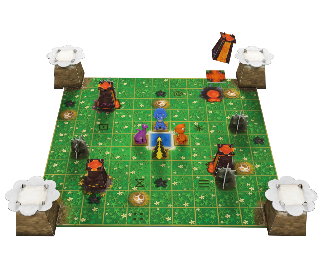Sauve qui peut !!! Les volcans entrent en éruption ! Tuile après tuile, la lave progresse ! Tous ensemble aidez les mignons petits dinosaures à fuir dans les hautes montagnes avant qu’ils ne soient pris au piège. Et n’oubliez pas les œufs restés dans leur nid !