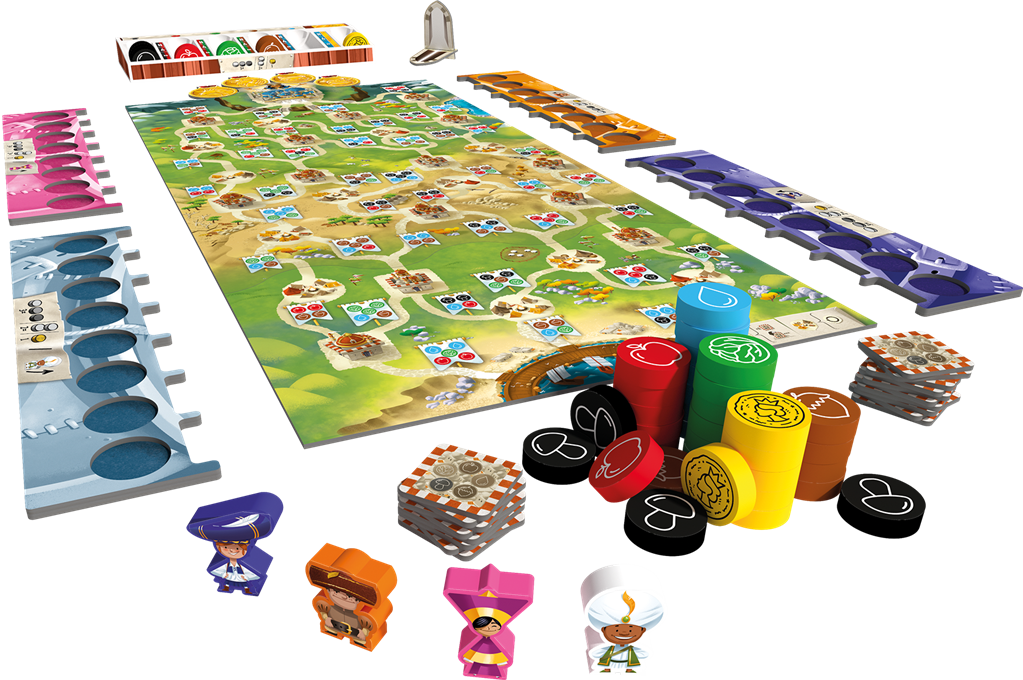 Dans cette adaptation familiale du célèbre jeu Splendor, chaque joueur collecte des ressources (eau, chou, pomme…) qu’il utilise ensuite pour progresser sur le plateau. Les villes permettent de gagner des ressources permanentes, tandis que les villages offrent l’opportunité de rejouer. Choisissez la meilleure stratégie pour atteindre les Portes du Palais avant leur fermeture : une parfaite initiation au jeu de société pour les enfants.
